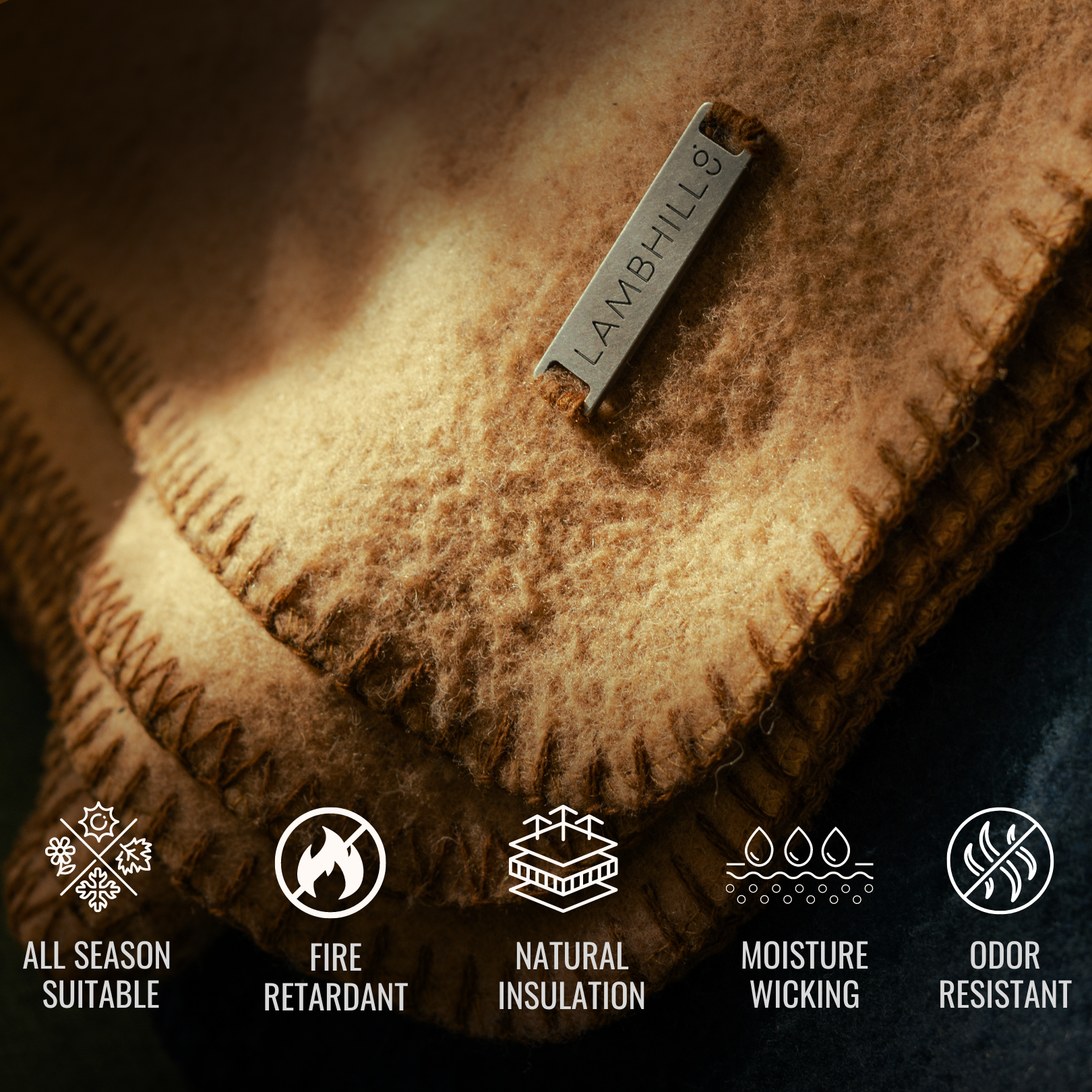 Each blanket is hand-embellished and completed by a team of skilled artisans who are dedicated to ensuring that no piece is left unfinished. It is with the utmost effort that we preserve the inherent essence and tactile qualities of wool in our blankets. We embrace the natural perfections of the look and aesthetic of wool.